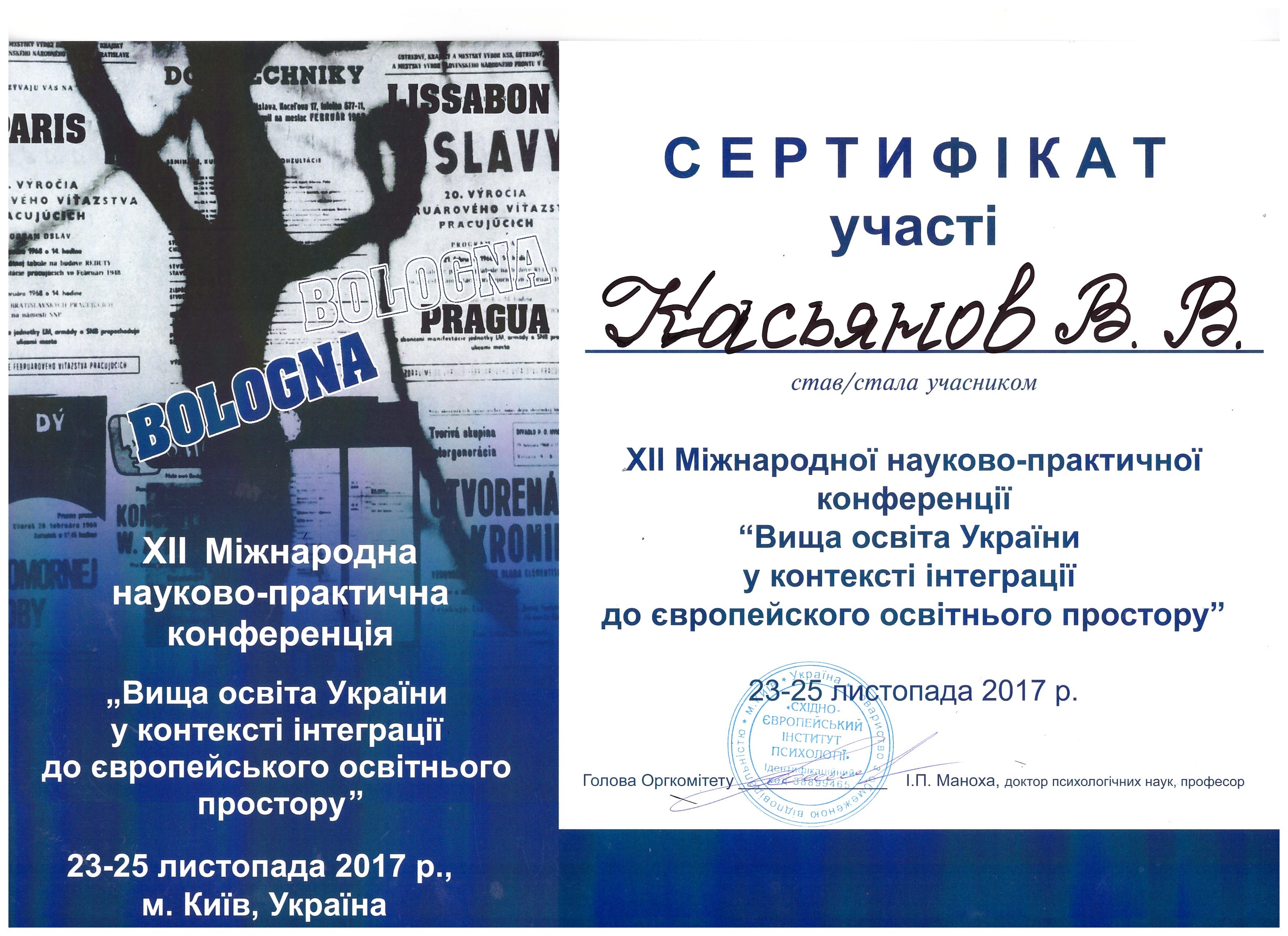 | 2873 | ХІІ Міжнародна науково-практична конференція "Вища освіта України у контексті інтеграції до європейського освітнього простору" | участь у конференції | м. Київ, Україна |