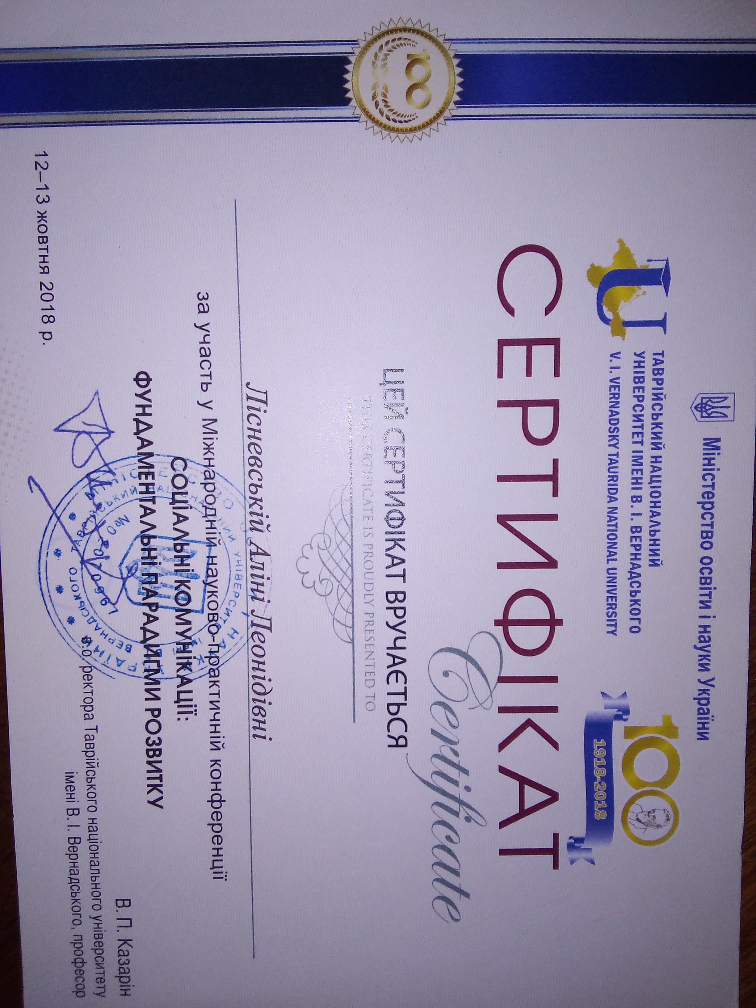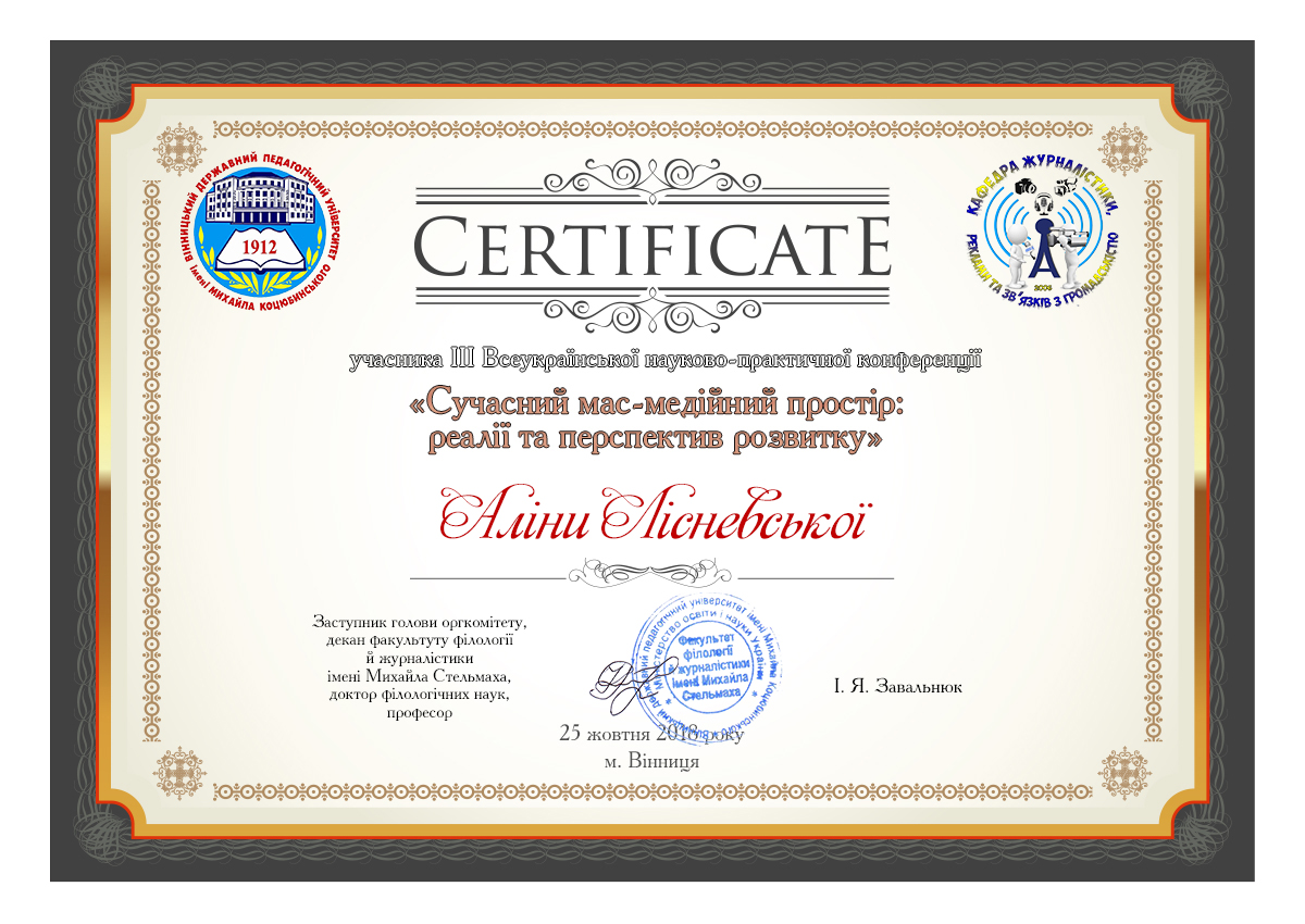 | 2836 | Інше | Фаховий модуль (за кордоном) | Сертифікат Лісневська.pdf | 21.04.2018 00:00 |