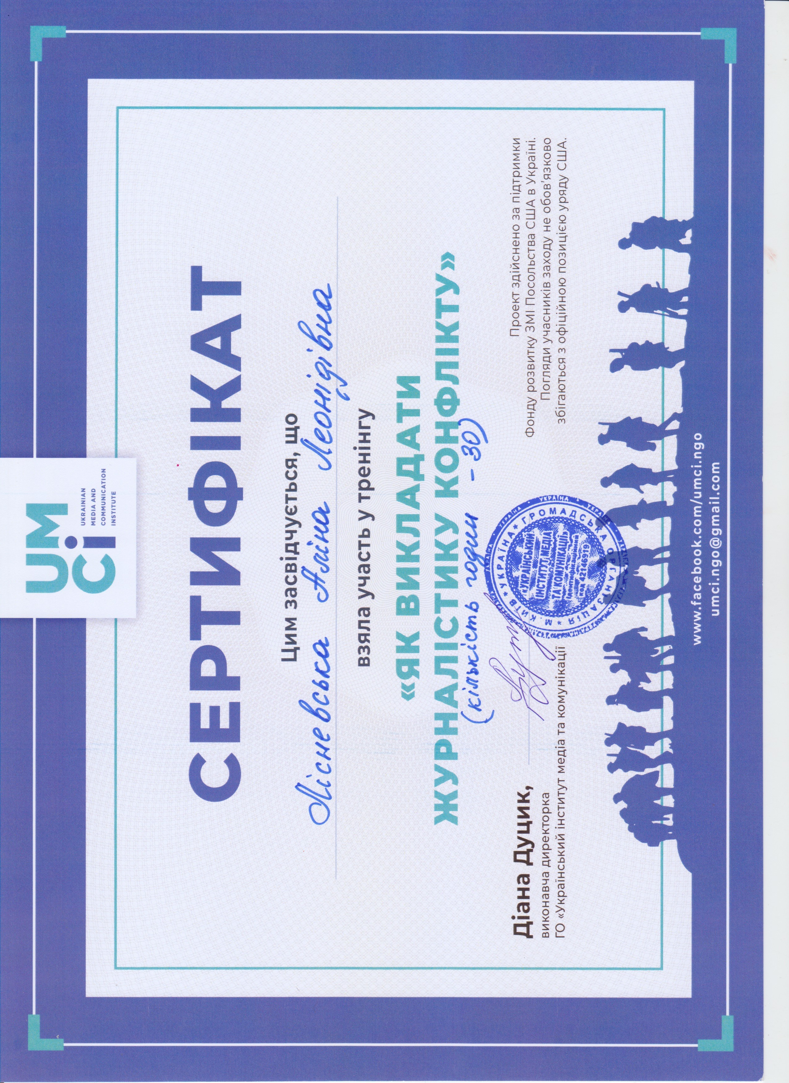 | 330 | Лектор тренінгів з медіабезпеки (Університет Грінченка, м. Київ) | 2017 | 10 |