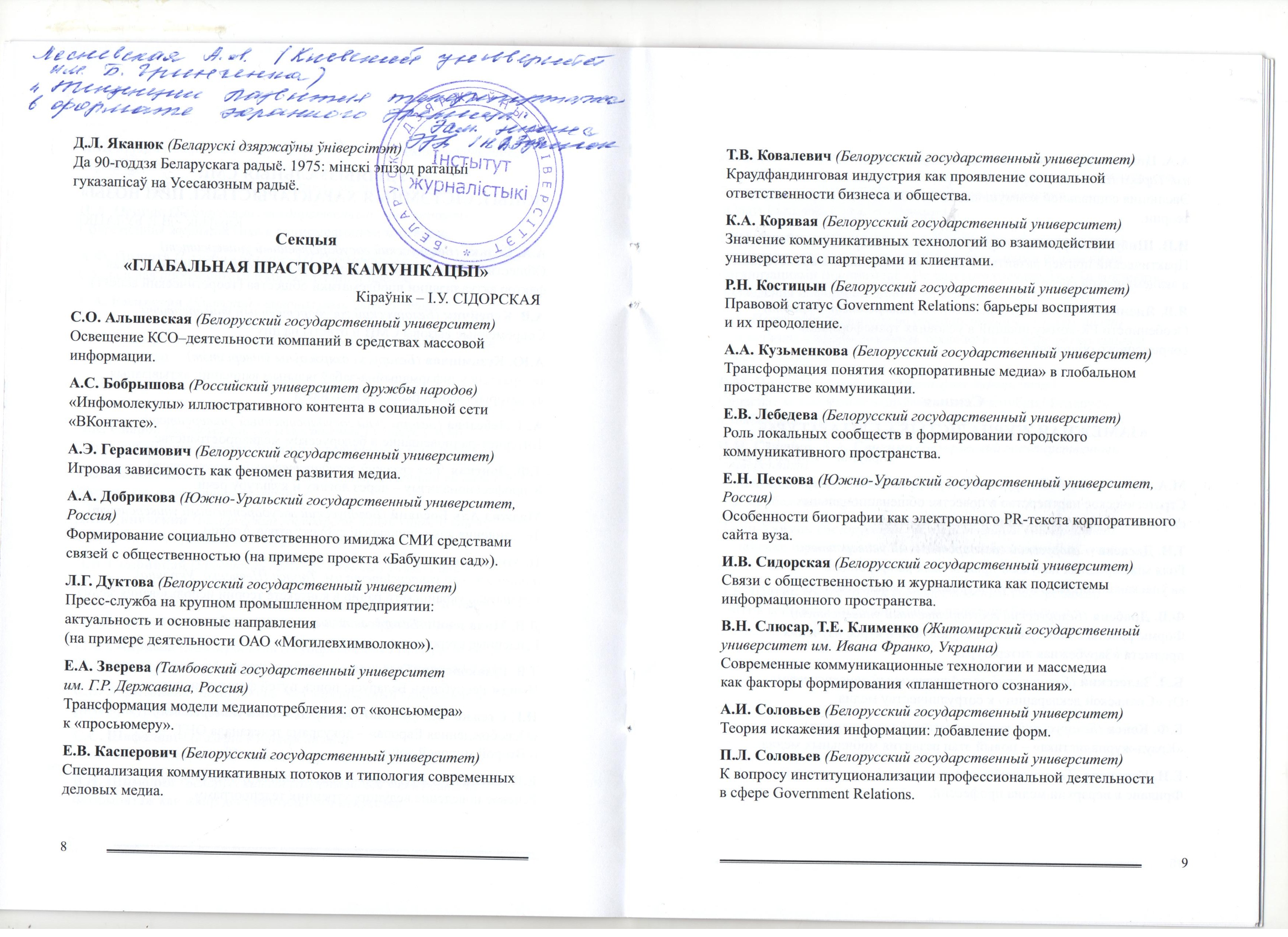 | 976 | Журналистыка-2015 | тенденции развития телерепортажа в формате экранного зрелища | Минск |