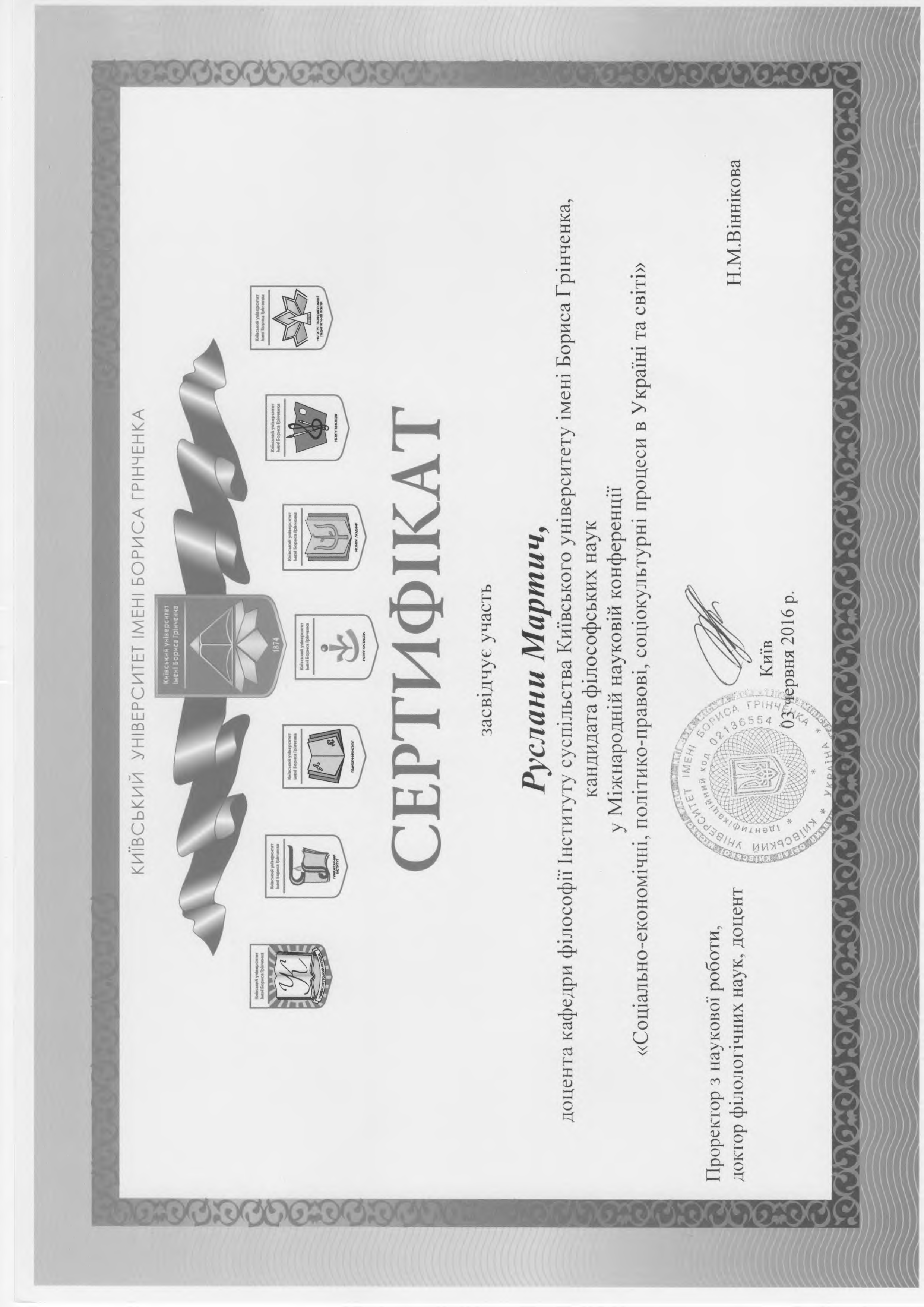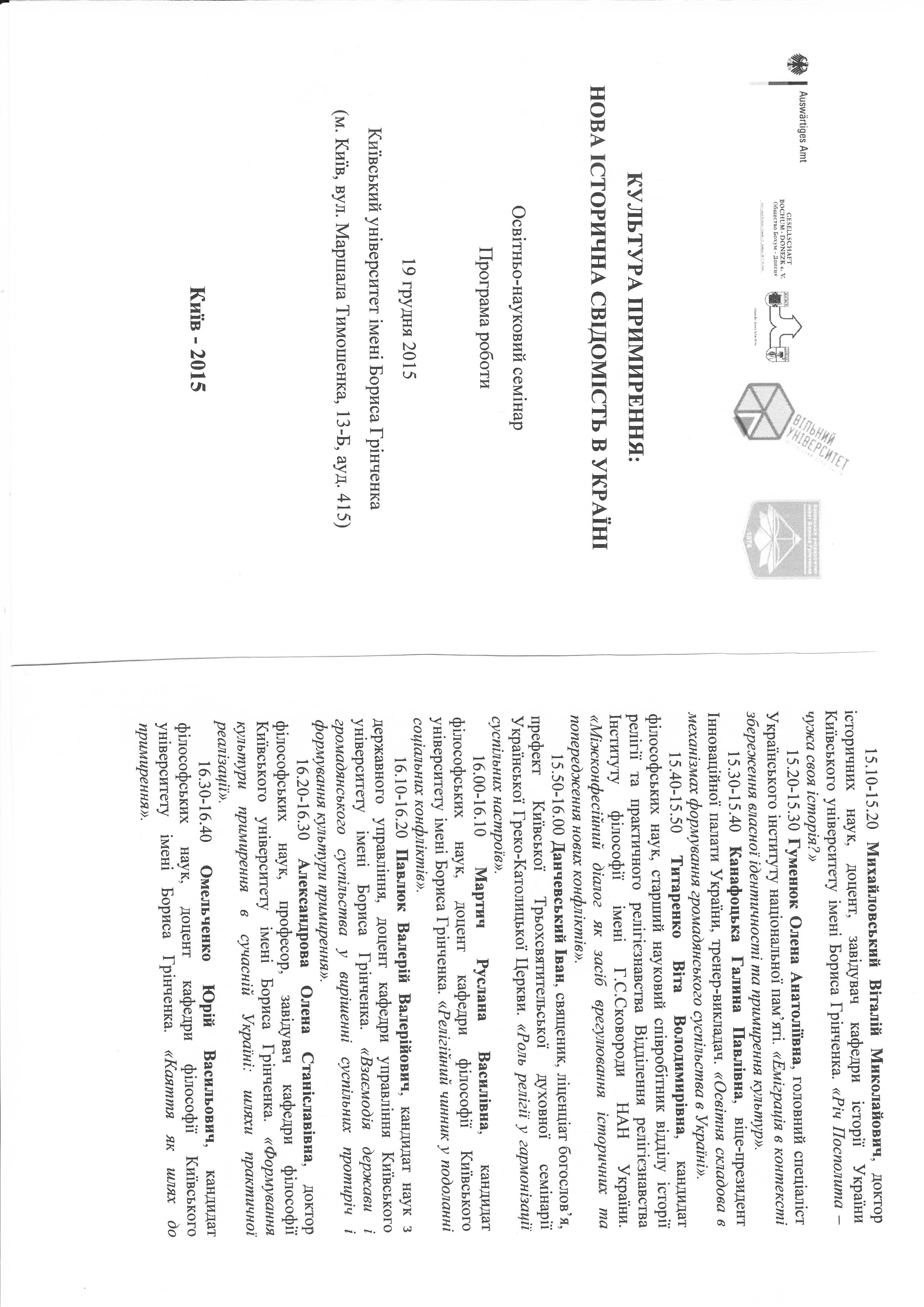 | 1005 | Культура примирення: нова історична свідомість в Україні | Релігійний чинник у подоланні соціальних конфліктів | Київський університет імені Бориса Грінченка |