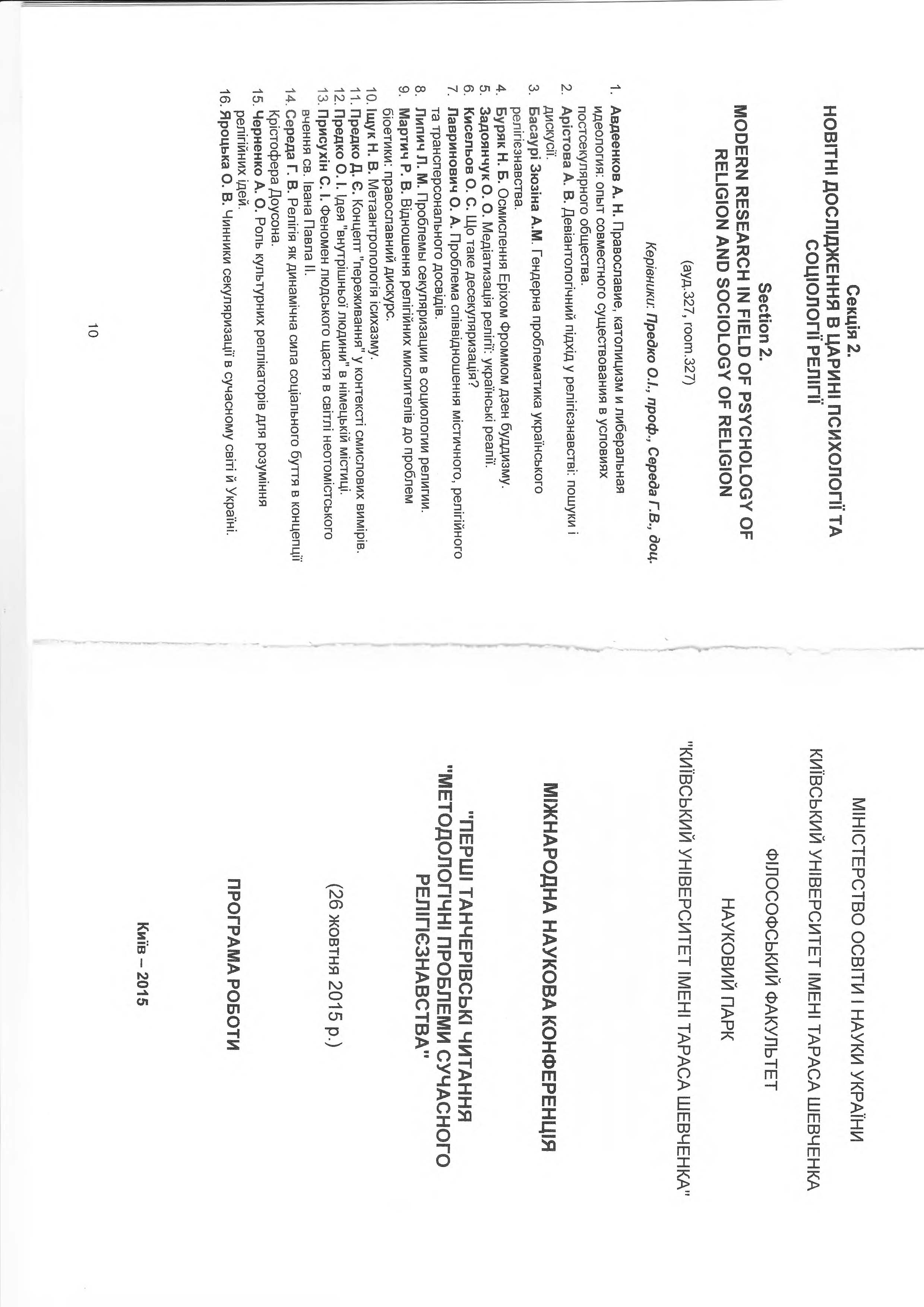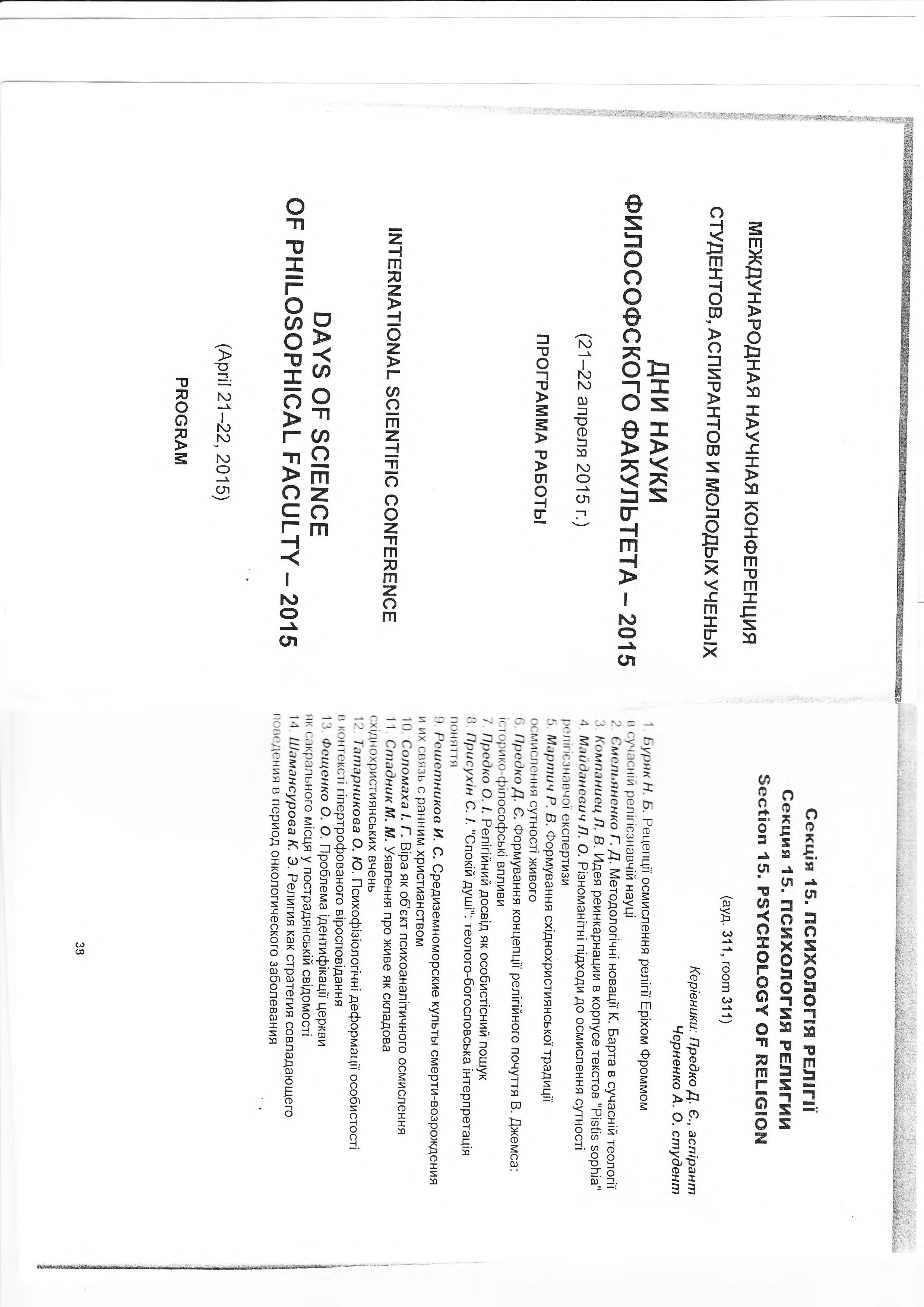 | 1007 | Дні науки філософського факультету - 2015 | Формування східнохристиянської традиції осмислення сутності живого | Київський національний університет імені Тараса Шевченка |