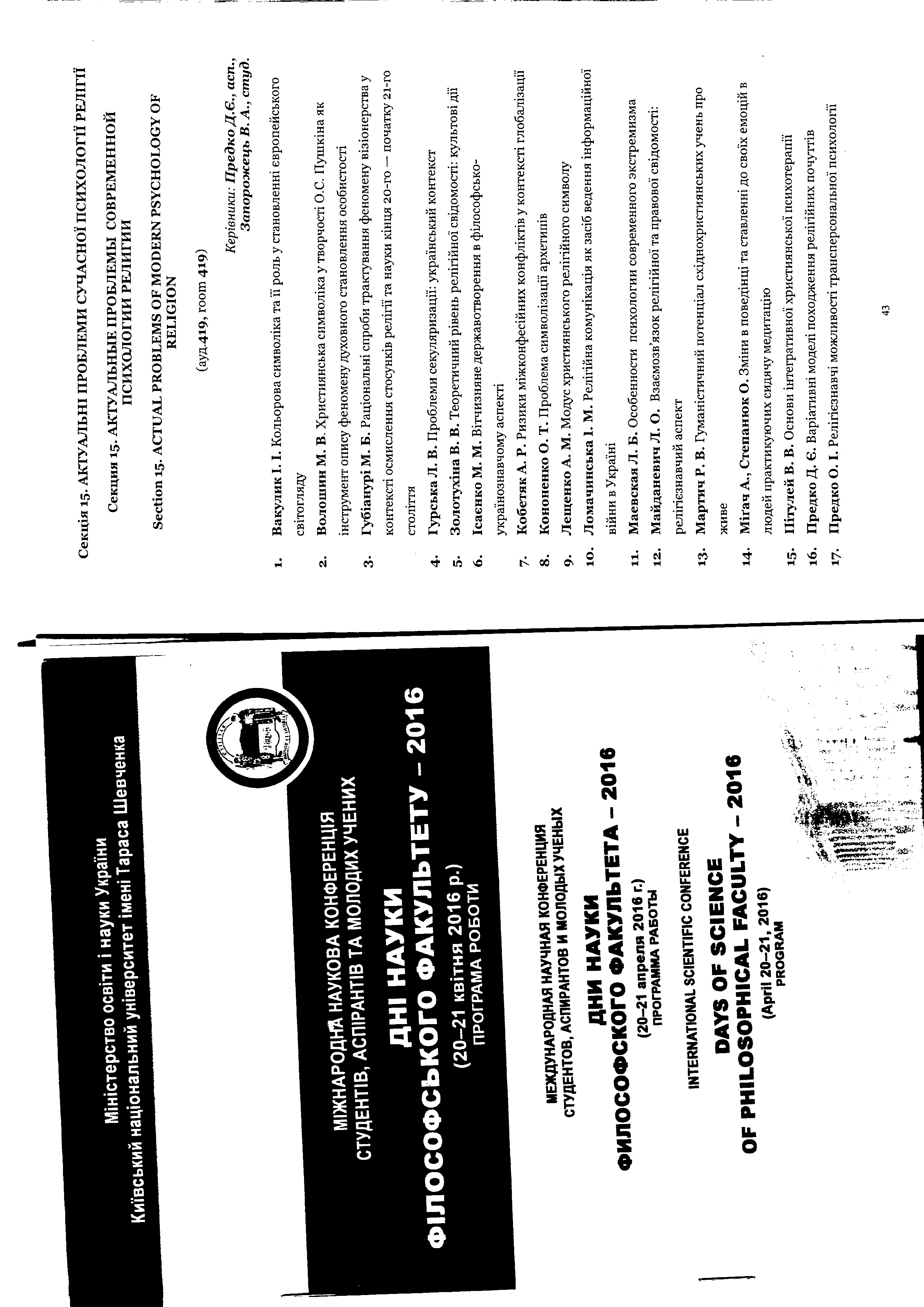 | 1009 | Дні науки філософського факультету - 2016 | Гуманістичний потенціал східнохристиянських учень про живе | Київський національний університет імені Тараса Шевченка |