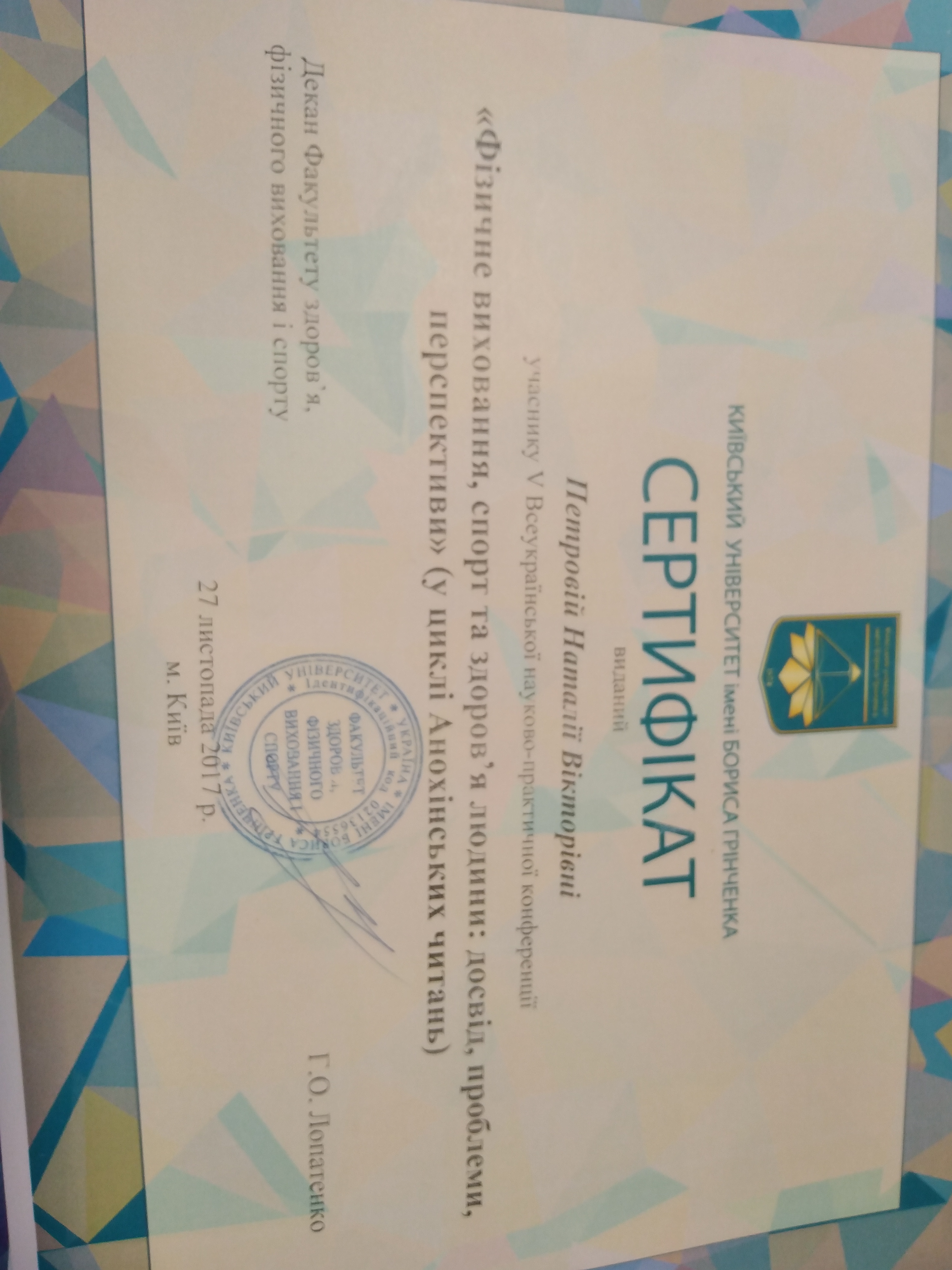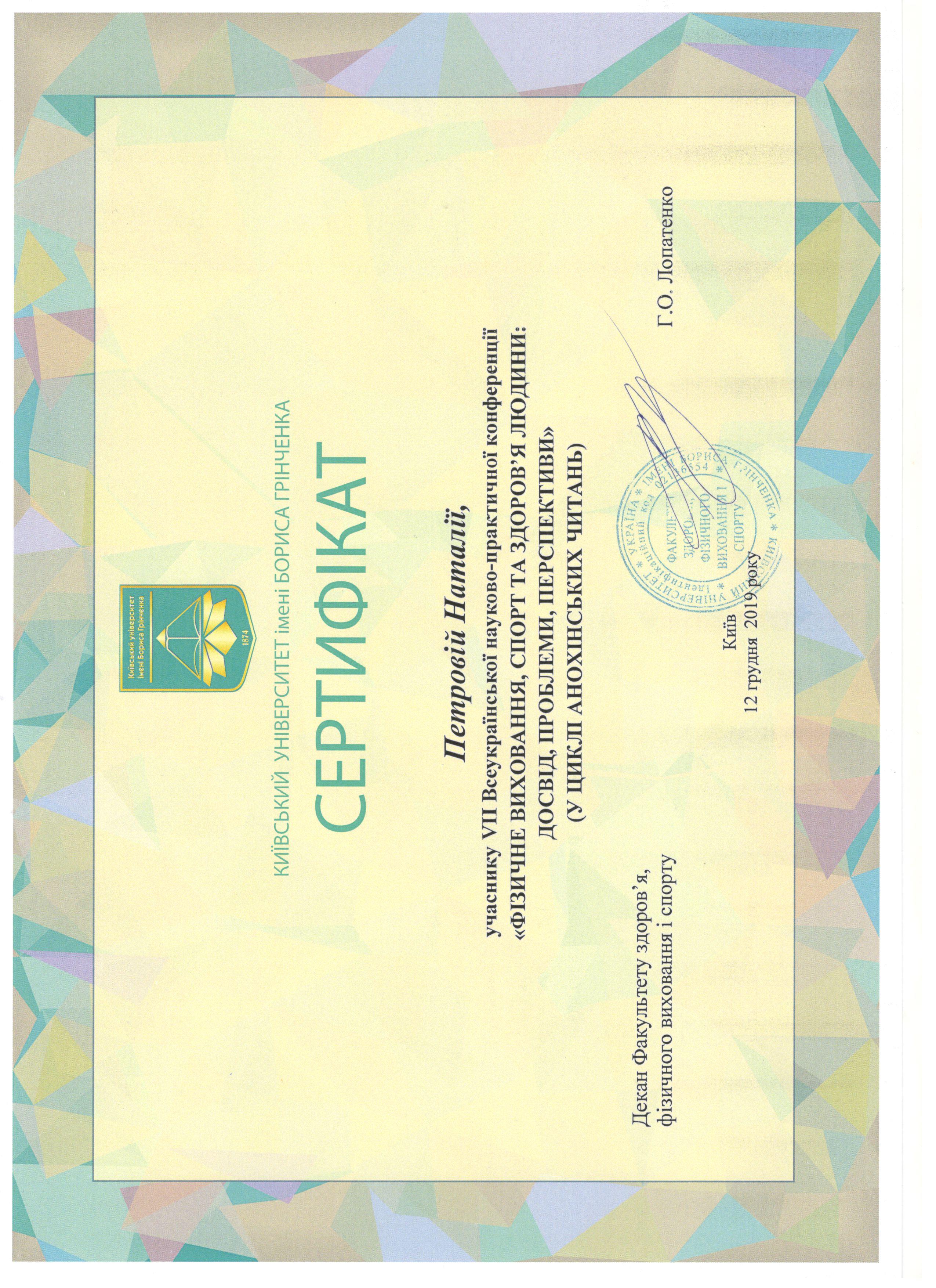 | 5354 | 7 Всеукраінська наукова конференція "Фізичне виховання, спорт та здоров,я людини | Анохінські читання | Університет імені Бориса Грінченка |