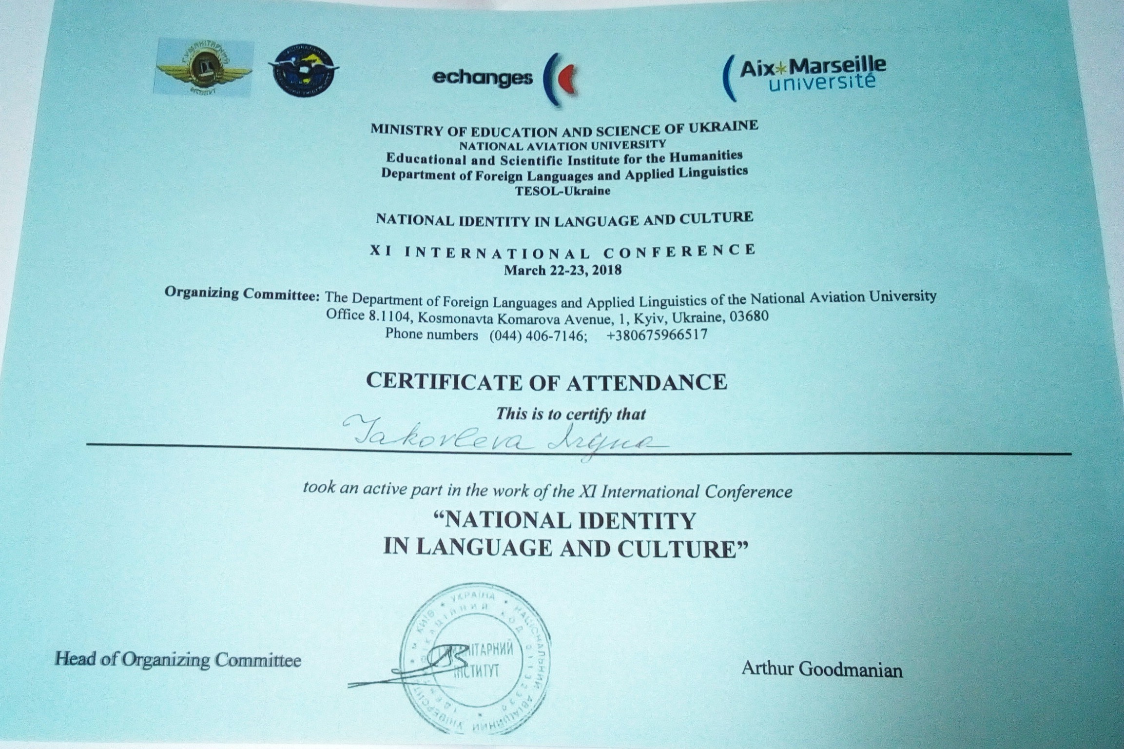 | ID | Назва заходу | Місце проведення | Документ, що засвідчує | Дата проведення |