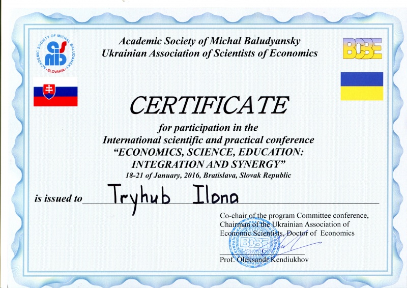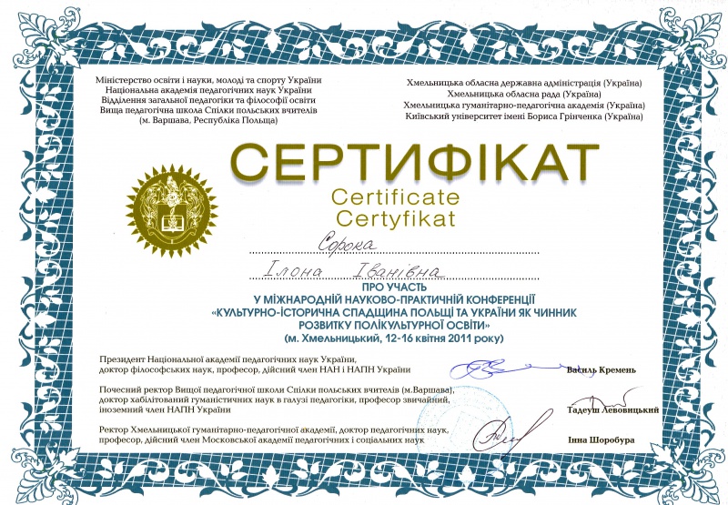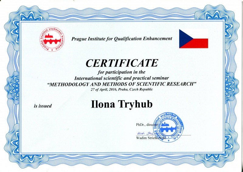 | 2 | Празький інститут підвищення кваліфікації | Підвищення кваліфікації | 24-30.04.2016 | Дистанційна | Учасник проекту |