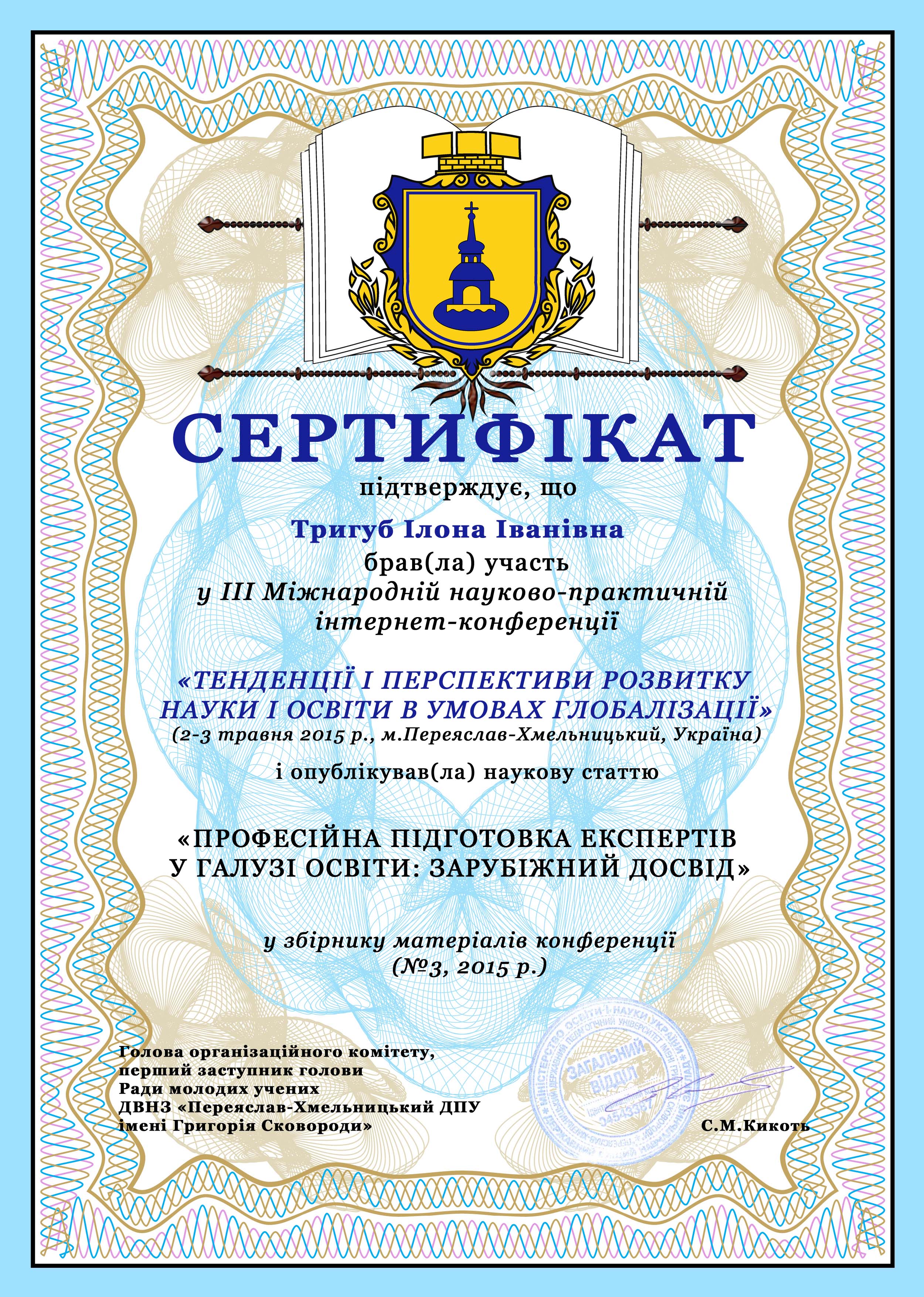 | 1026 | «Апробація наукових досліджень: публікації у наукометричних журналах» | Науковий семінар в рамках Фестивалю науки у Київському університеті імені Бориса Грінченка | Київ | 25.04.2016 00:00 | 2 |
