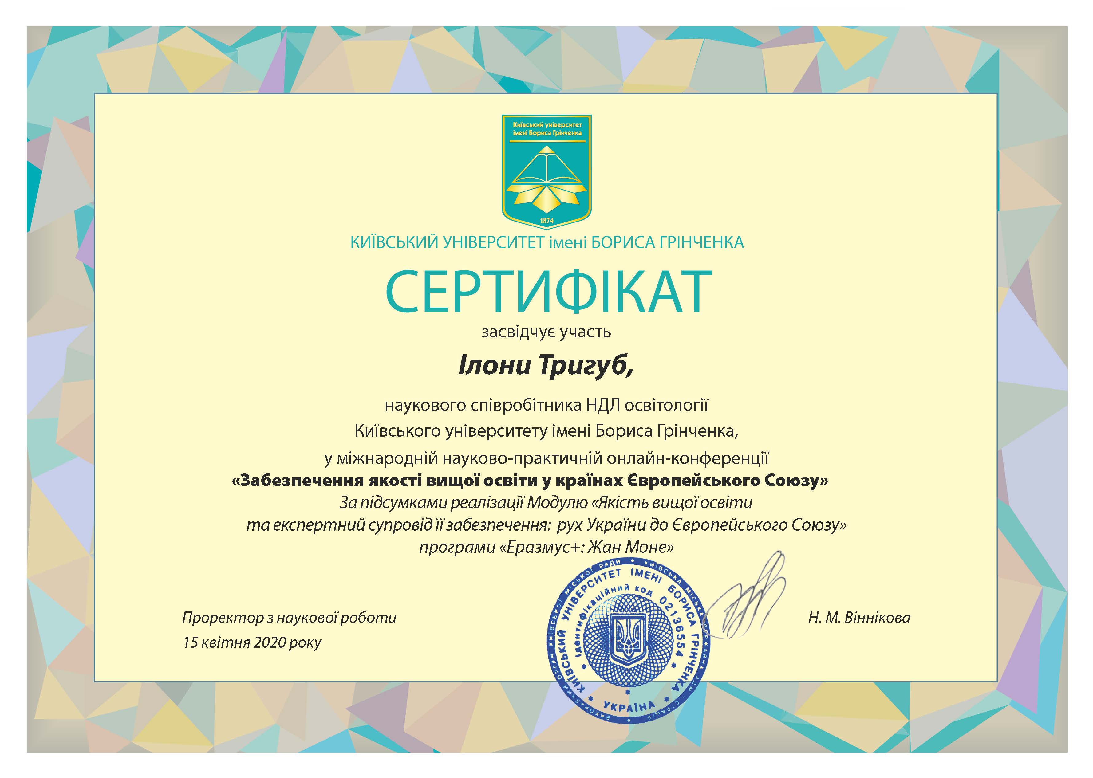 | 32236 | Postgraduate extent of the education module «Higher education quality and expert support: Ukraine’s movement toward the European Union» | |