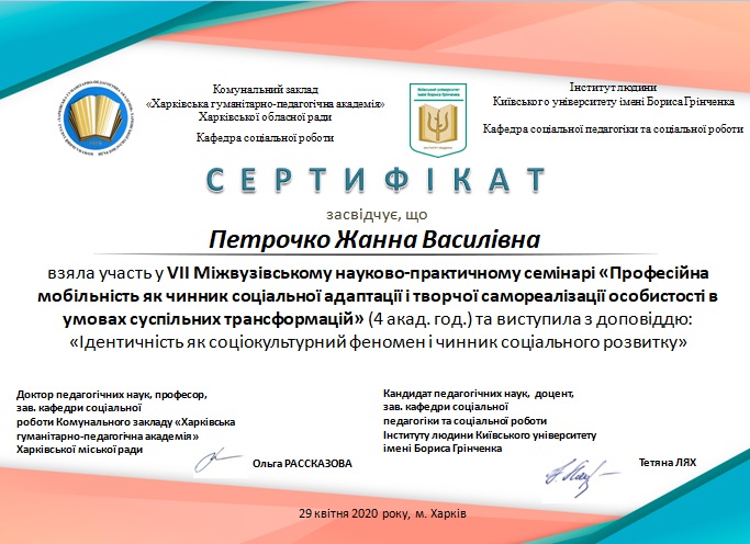 5663 VII Міжвузівський науково-практичний семінар «Професійна мобільність як чинник соціальної адаптації і творчої самореалізації особистості в умовах суспільних трансформацій» Ідентичність як соціокультурний феномен і чинник соціального розвитку Харків document