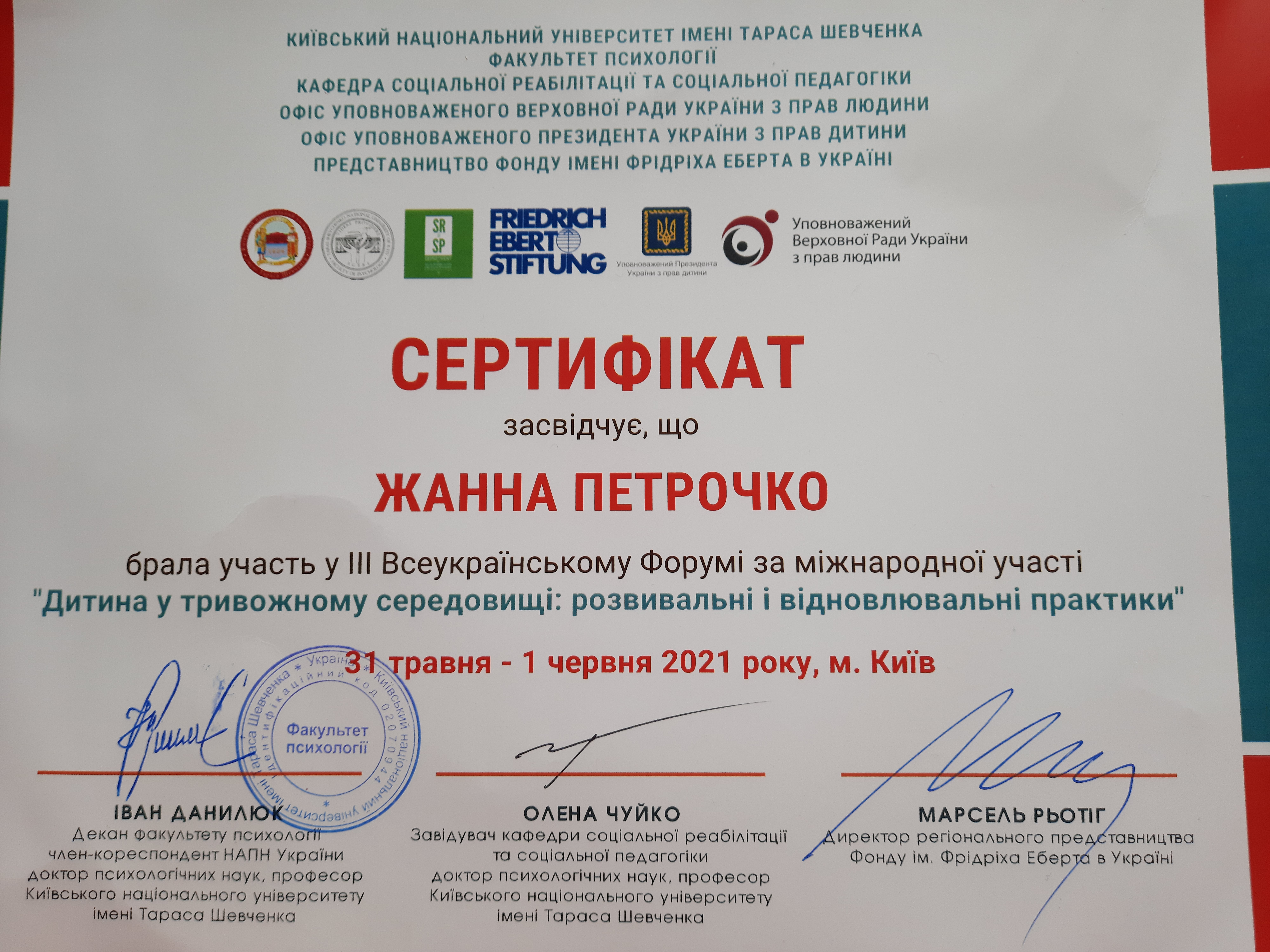 - проєкт ЮНІСЕФ "Моніторинг потреб та підтримка дитини в умовах війни", Партнерство "Кожній дитині" (2022 р.)